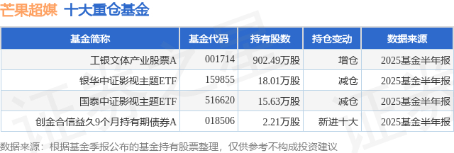 重仓芒果超媒的公募基金请见下表: