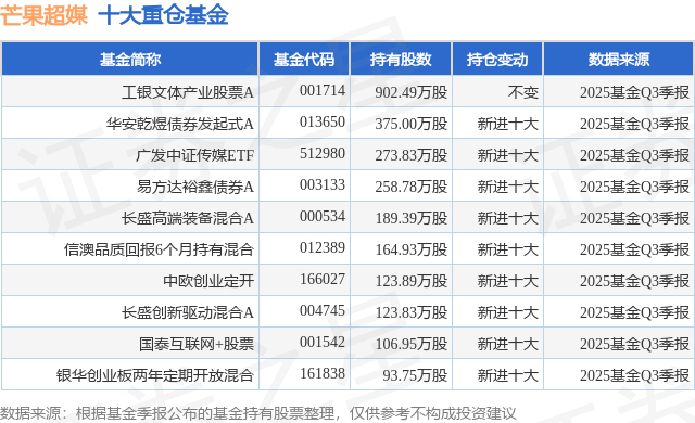 重仓芒果超媒的前十大公募基金请见下表: