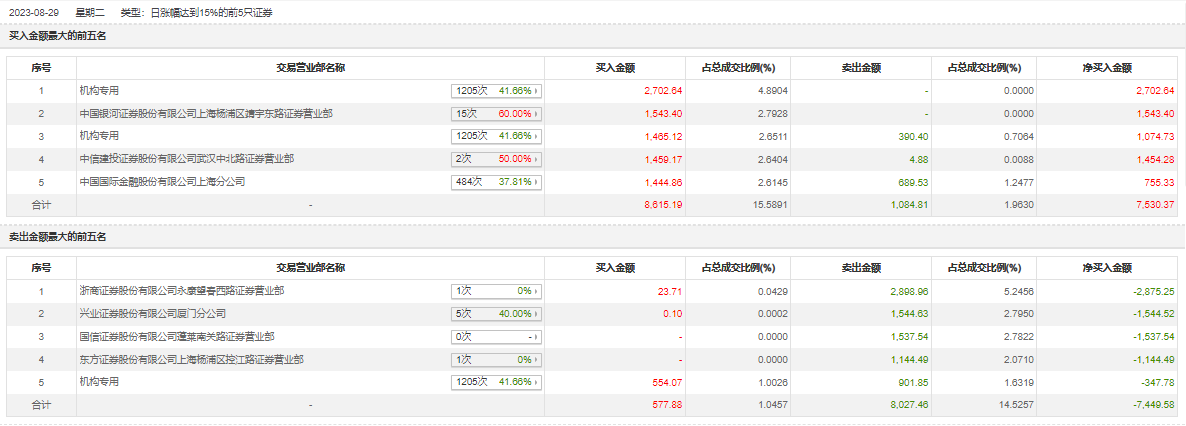 8月29日,中光防雷今日涨停,龙虎榜数据显示,上榜营业部席位全天成交1.83亿元,占当日总成交金额比例为33.12%。其中,买入金额为9193.07万元,卖出金额为9112.28万元,合计净买入80.8万元。
