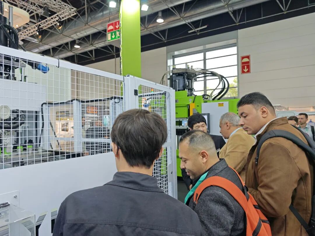 工作人员通过动态演示与深度讲解,为全球客户打开了一扇了解伊之密橡胶机全链条能力的窗口。工作人员熟练地操作着各种设备,从单机设备的精准运行到完整生产解决方案的高效协同,每一个环节都展现得淋漓尽致。