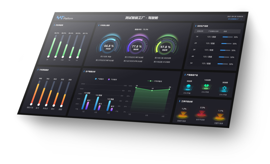 全流程方案深度赋能工厂全链路,凭智能调度提升设备效率与质量,筑牢防线,激活潜能,让工序精准可控,从原材料、生产、质量、设备、人效等全流程可追溯。