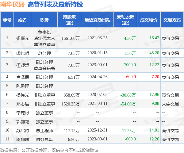 南华仪器:12月31日高管苏启源减持股份合计11.25万股