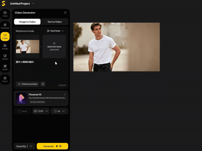 例如,将静态图片拖拽到“视频生成”功能上后,它便会在画布原地变为动态视频。