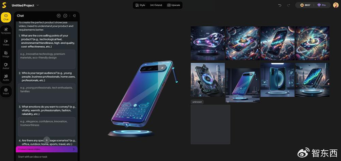 在我们的体验中,营销类Expert Agent尤其值得关注。要使用Expert Agents,用户本身并不需要是特定领域的“专家”——Expert Agents在每个场景都会给出清晰的指引,用户按照指引,像做填空题一样补全产品卖点、目标受众、所传递的情绪、使用场景等关键信息后,系统便能生成完整的营销素材,如海报、宣传视频等等。
