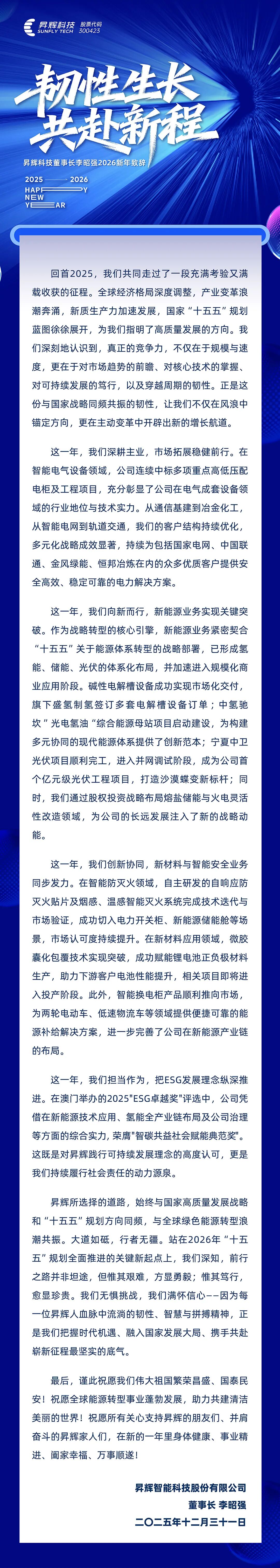 韧性生长 共赴新程丨昇辉科技董事长李昭强2026新年致辞