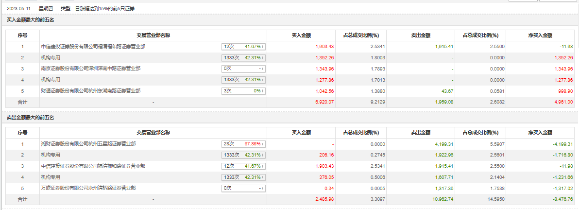 具体来看,机构买入3212.33万元,卖出3530.67万元,合计净卖出318.34万元。此外,中信建投证券福清福和路证券营业部、南京证券深圳深南中路证券营业部分别买入1903.43万元、1343.96万元;湘财证券杭州五星路证券营业部、中信建投证券福清福和路证券营业部分别卖出4199.31万元、1915.41万元。