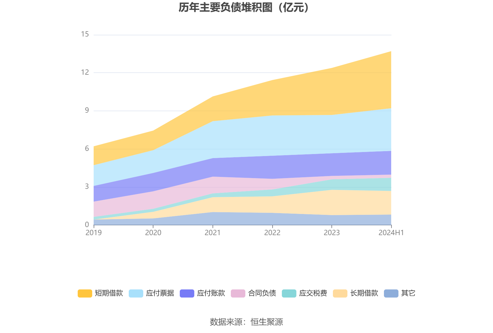 负债重大变化方面,截至2024年上半年末,公司短期借款较上年末增加21.27%,占公司总资产比重上升1.57个百分点;应付票据较上年末增加11.47%,占公司总资产比重上升0.46个百分点;应交税费较上年末增加24.86%,占公司总资产比重上升0.43个百分点;长期借款较上年末减少6.27%,占公司总资产比重下降0.67个百分点。