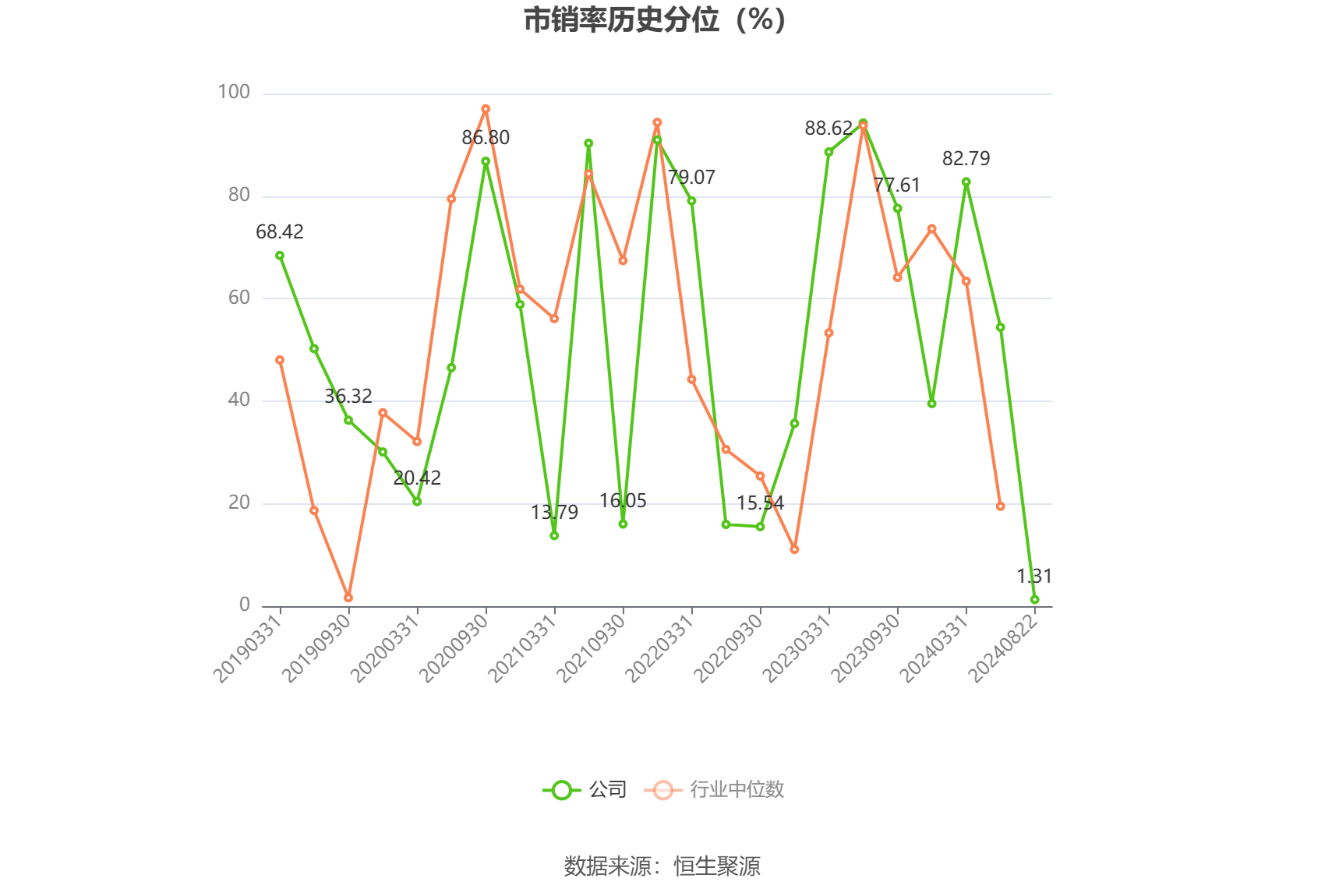 2024年上半年,公司营业收入现金比为79.70%,净现比为-73.25%。