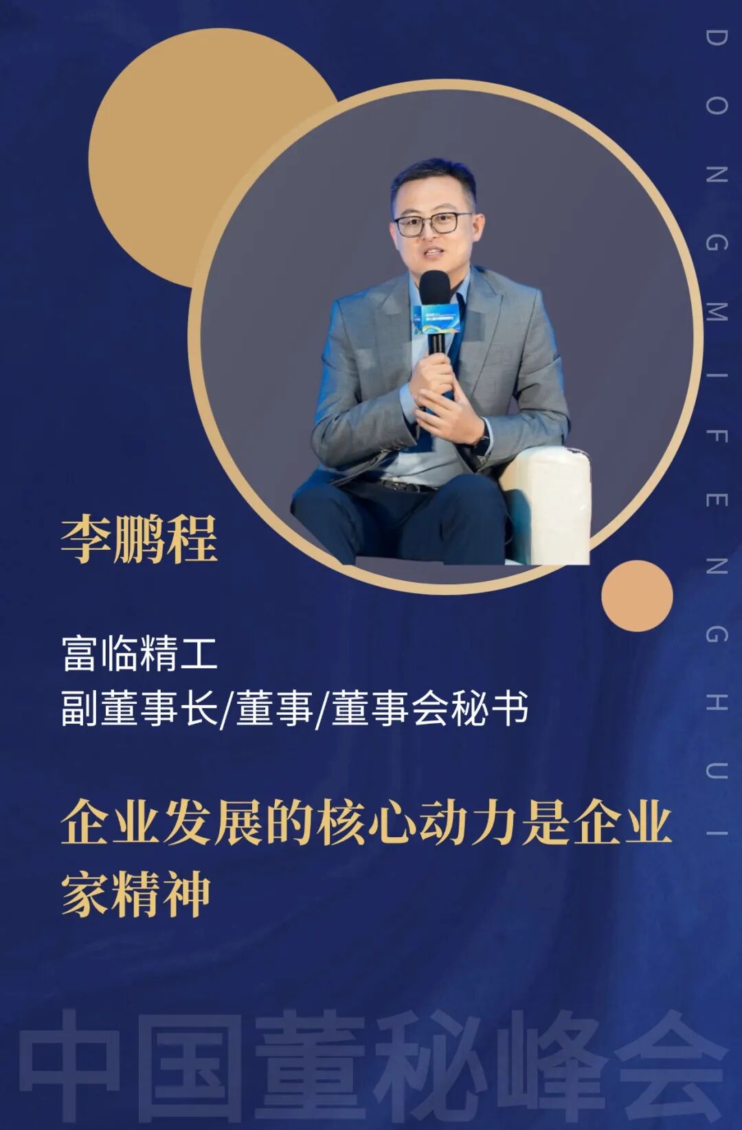 李鹏程先生—富临精工股份有限公司董事、副董事长兼董事会秘书。 曾任职于国泰君安证券投资银行部,历任陕西金叶科教集团董事局主席秘书、诺德新材料副总经理兼董秘等职位。