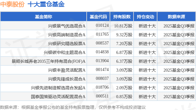 重仓中泰股份的公募基金请见下表:
