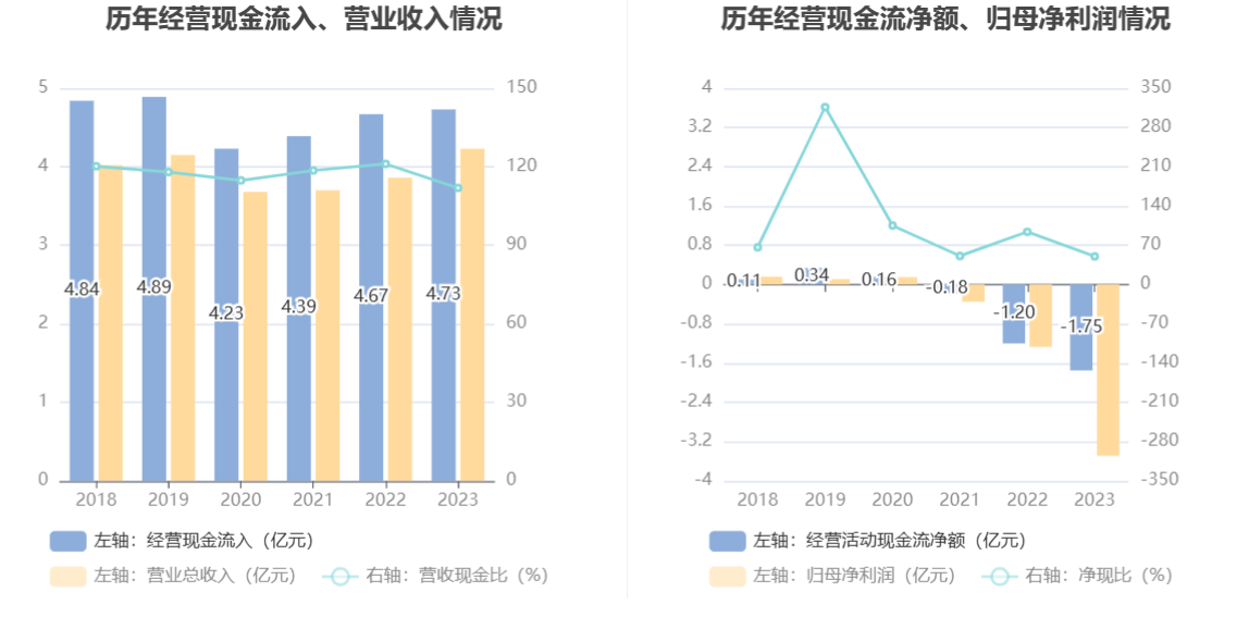 进一步统计发现,2023年公司自由现金流为-3.57亿元,上年同期为-2.72亿元。