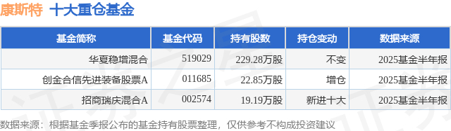 重仓康斯特的公募基金请见下表: