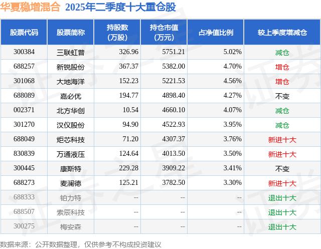 华夏稳增混合的前十大重仓股如下: