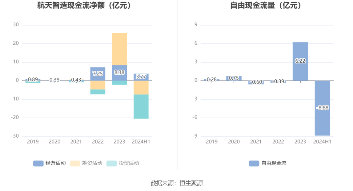 进一步统计发现,2024年上半年公司自由现金流为-8.88亿元,上年同期为0.44亿元。