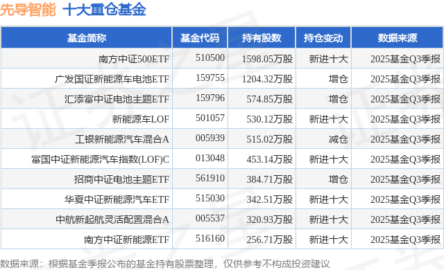 根据2025基金Q3季报公募基金重仓股数据,重仓该股的公募基金共119家,其中持有数量最多的公募基金为南方基金的南方中证500ETF。南方中证500ETF目前规模为400.98亿元,最新净值7.3489(11月12日),较上一交易日下跌0.66%,近一年上涨17.37%。该公募基金现任基金经理为罗文杰。罗文杰在任的基金产品包括:南方中证500ETF联接(LOF)A,管理时间为2013年4月22日至今,期间收益率为143.42%;南方沪深300ETF,管理时间为2013年5月17日至今,期间收益率为152.74%;南方沪深300ETF联接A,管理时间为2013年5月17日至今,期间收益率为138.24%。