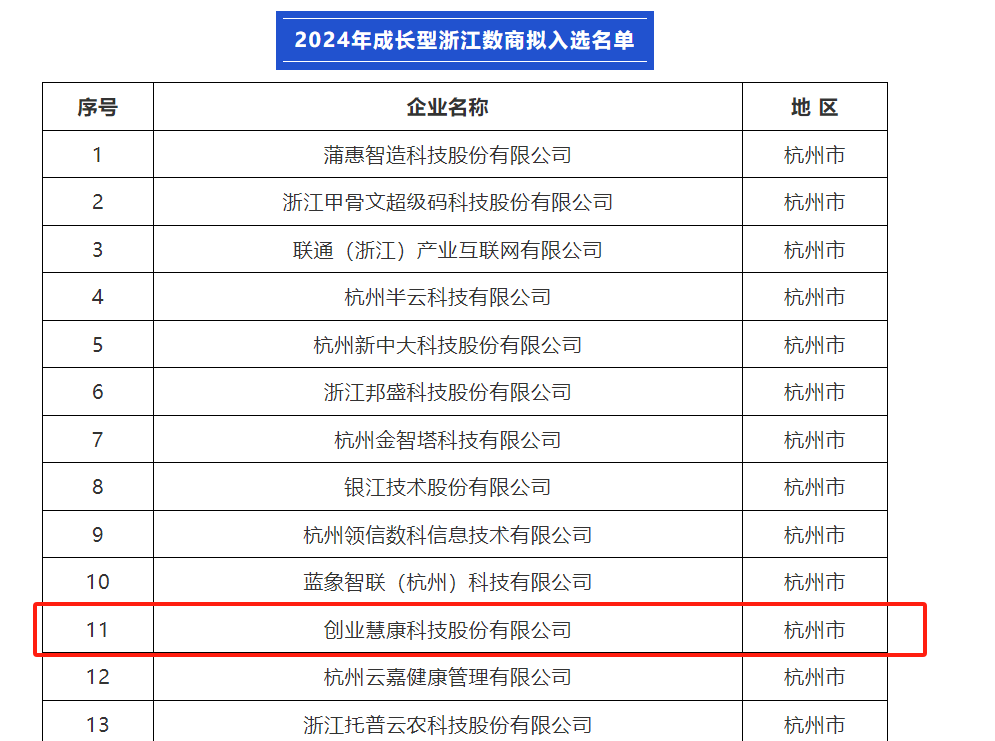 喜报!创业慧康入选首批“成长型浙江数商”!