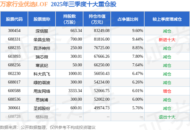 根据2025基金Q3季报公募基金重仓股数据,重仓该股的公募基金共109家,其中持有数量最多的公募基金为万家基金的万家行业优选LOF。万家行业优选LOF目前规模为86.7亿元,最新净值1.4752(1月9日),较上一交易日上涨2.75%,近一年上涨66.86%。该公募基金现任基金经理为黄兴亮。黄兴亮在任的基金产品包括:万家经济新动能混合A,管理时间为2019年10月30日至今,期间收益率为95.52%;万家自主创新混合A,管理时间为2020年2月10日至今,期间收益率为30.28%;万家创业板2年定期开放混合C,管理时间为2020年8月14日至今,期间收益率为-17.94%。