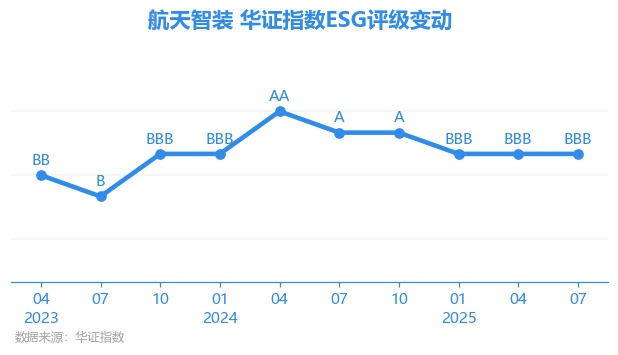 日前,华证指数公布了新一期(2025年7月31日)的ESG评级结果,航天智装(300455.SZ)获得BBB评级(华证指数评级为C起至AAA九档,C为最低档,AAA为其最高一级评级/AA为其第二档),上一期(2025年4月30日)ESG评级为BBB。本期ESG评级在529家电子设备、仪器和元件行业A股上市公司中排名第134(上一期排名第127)。