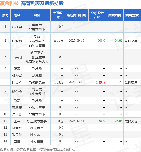 赢合科技的高管列表及最新持股情况如下: