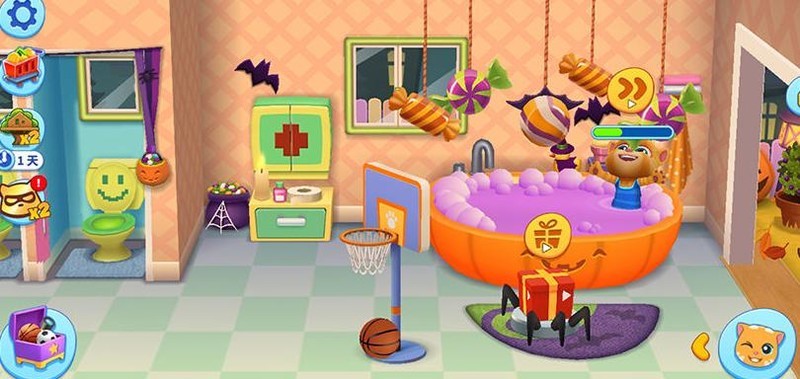 汤姆猫家族的每个成员都活泼可爱,但和人类一样,他们也需要规律作息、吃饭洗澡、玩耍休息。当它们感到不适或生病时,也会需要照顾。在汤姆猫总动员这款游戏中,位于浴室与厕所之间的大房子中,设有一个贴心的家庭小药柜。只要猫咪们身体不舒服或受伤,这个药柜就能派上用场,为它们提供所需的药品与呵护,让它们尽快恢复活力。