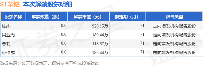 ST华铭(300462)129.96万股限售股将于9月19日解禁,占总股本0.72%
