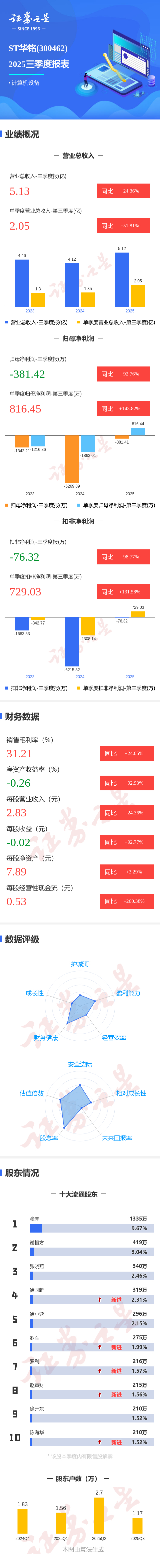 图解ST华铭三季报:第三季度单季净利润同比增长143.82%