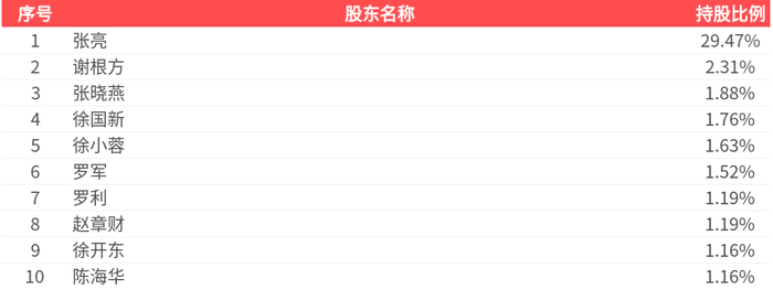 公司股东户数为1.17万户,前十大股东持股数量为7841.99万股,占总股本比例为43.27%,前十大股东持股情况如下:
