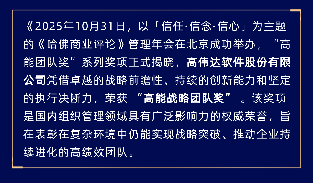 荣誉时刻|高伟达软件有限公司荣膺《哈佛商业评论》2025“高能战略团队奖”