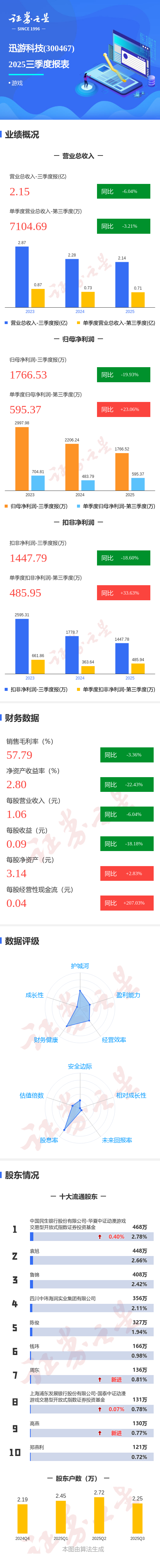 图解迅游科技三季报:第三季度单季净利润同比增长23.06%