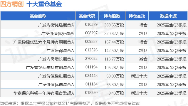 重仓四方精创的公募基金请见下表: