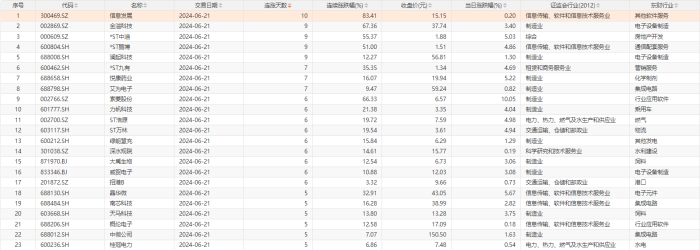 6月21日,Choice数据统计,今日1只个股连续10天上涨,为信息发展;4只个股连续9天上涨,包括金溢科技、澜起科技等;此外,艾为电子、悦康药业、*ST九有连续7天上涨;力帆科技、索菱股份等8只个股连续6天上涨。