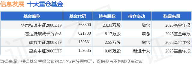 3月19日信息发展跌6.68%,华泰柏瑞中证2000ETF基金重仓该股