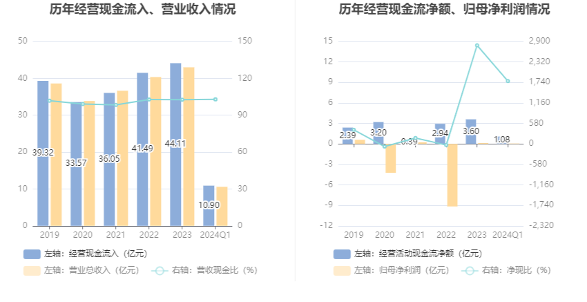 2024年第一季度,公司营业收入现金比为102.90%,净现比为1778.12%。