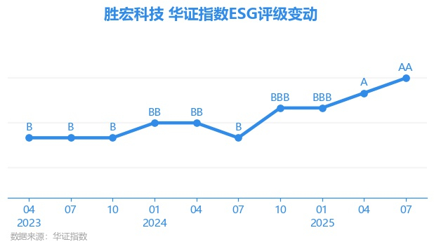 日前,华证指数公布了新一期(2025年7月31日)的ESG评级结果,胜宏科技(300476.SZ)获得AA评级(华证指数评级为C起至AAA九档,C为最低档,AAA为其最高一级评级/AA为其第二档),上一期(2025年4月30日)ESG评级为A。本期ESG评级在529家电子设备、仪器和元件行业A股上市公司中排名第37(上一期排名第36)。
