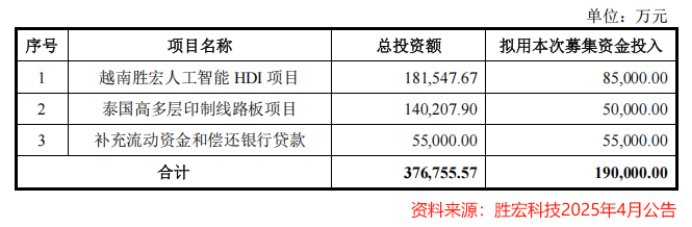 2025年4月,胜宏科技砸下37.68亿元,其中18.15亿元投向“越南胜宏人工智能HDI项目”,14.02亿元用于“泰国高多层印制线路板项目”。