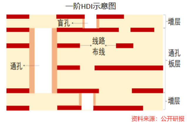 按盲孔堆叠次数,HDI分为一阶到任意阶,阶数越高布线密度越高,技术难度也越大,而高阶HDI正是AI服务器的刚需。