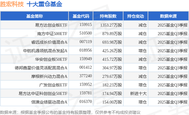 根据2025基金Q3季报公募基金重仓股数据,重仓该股的公募基金共435家,其中持有数量最多的公募基金为易方达基金的易方达创业板ETF。易方达创业板ETF目前规模为102.0亿元,最新净值3.188(12月31日),较上一交易日下跌1.22%,近一年上涨51.81%。该公募基金现任基金经理为成曦 刘树荣。成曦在任的基金产品包括:易方达创业板ETF联接A,管理时间为2016年5月7日至今,期间收益率为53.26%;易方达深证100ETF,管理时间为2016年5月7日至今,期间收益率为84.1%;易方达上证科创板50ETF,管理时间为2020年9月28日至今,期间收益率为-3.01%。刘树荣在任的基金产品包括:易方达深证100ETF联接A,管理时间为2017年7月18日至今,期间收益率为62.82%;易方达创业板ETF联接A,管理时间为2017年7月18日至今,期间收益率为90.27%;易方达深证100ETF,管理时间为2017年7月18日至今,期间收益率为62.53%;