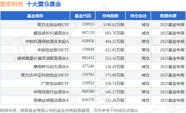 重仓胜宏科技的前十大公募基金请见下表: