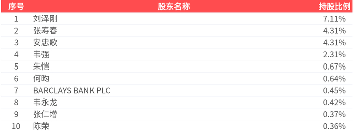 公司股东户数为5.76万户,前十大股东持股数量为2.25亿股,占总股本比例为20.94%,前十大股东持股情况如下: