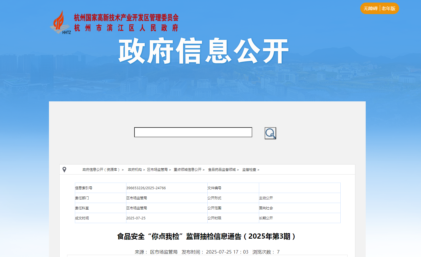 近期,杭州高新技术产业开发区(滨江)市场监督管理局组织抽检饼干、蛋制品、豆制品、方便食品、糕点、罐头、粮食加工品、肉制品、食用农产品、食用油、油脂及其制品、薯类和膨化食品、速冻食品、糖果制品等13类“你点我检”食品共60批次样品。根据食品安全国家标准检验和判定:抽样检验合格60批次。