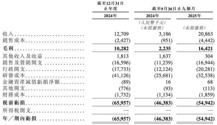 2024年度,糖吉医疗的营收约为人民币1270.9万元,2025年前三季度(前9个月)约为2086.3万元,毛利分别约为1028.2万元、1642.1万元,净亏损分别约为6595.7万元、5494.2万元。