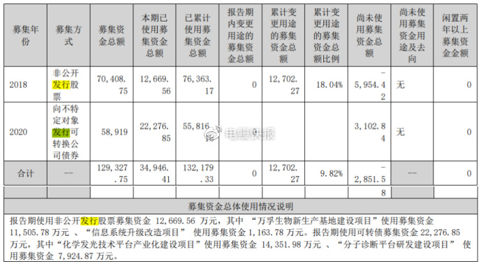 与此同时,《电鳗财经》通过年报注意到,万孚生物2022年年报显示,该公司2018年定增募集7亿元资金使用完成;不过,2022年8月20日,该公司随之就推出2022年度向特定对象发行股票新的预案。
