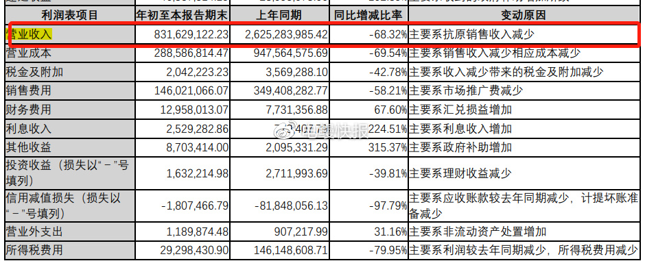 最新财报显示,万孚生物2023年一季度实现营业收入8.32亿元,同比下降68.32%;归母净利润2.04亿元,同比下降77.46%;扣非净利润1.95亿元,同比下降78.26%;该公司在营业收入下滑的原因中仅给出“主要系抗原销售收入减少”。