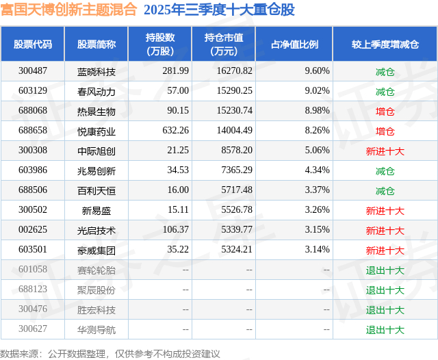 根据2025基金Q3季报公募基金重仓股数据,重仓该股的公募基金共13家,其中持有数量最多的公募基金为富国基金的富国天博创新主题混合。富国天博创新主题混合目前规模为16.96亿元,最新净值2.3048(1月6日),较上一交易日上涨0.51%,近一年上涨49.5%。该公募基金现任基金经理为毕天宇。毕天宇在任的基金产品包括:富国高端制造行业股票A,管理时间为2014年6月20日至今,期间收益率为337.4%;富国龙头优势混合A,管理时间为2020年1月14日至今,期间收益率为53.65%;富国均衡成长三年持有期混合A,管理时间为2021年9月16日至今,期间收益率为-2.46%。