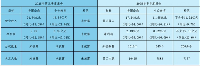 2025年华图山鼎、中公教育、粉笔主要经营数据