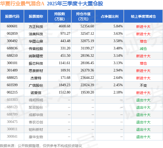 华夏行业景气混合A的前十大重仓股如下: