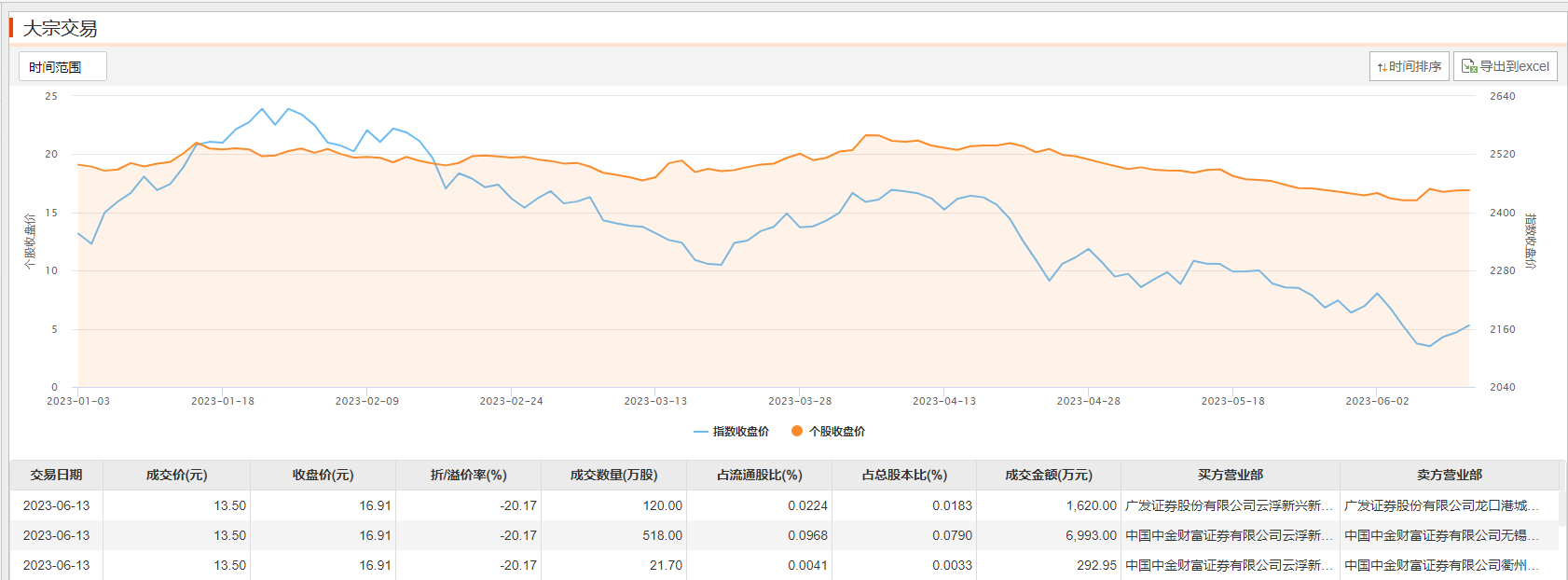 温氏股份今日大宗交易成交659.7万股,折价率20.17%
