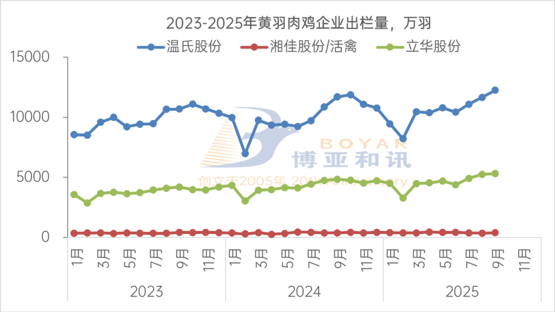 2025年9月,公司销售黄羽肉鸡803.4万只,销售收入2.89亿元,销售均价为15.17元/公斤,环比增长15.71%。2025年1-9月,公司共销售黄羽肉鸡6649万只,销售收入达20.49亿元。