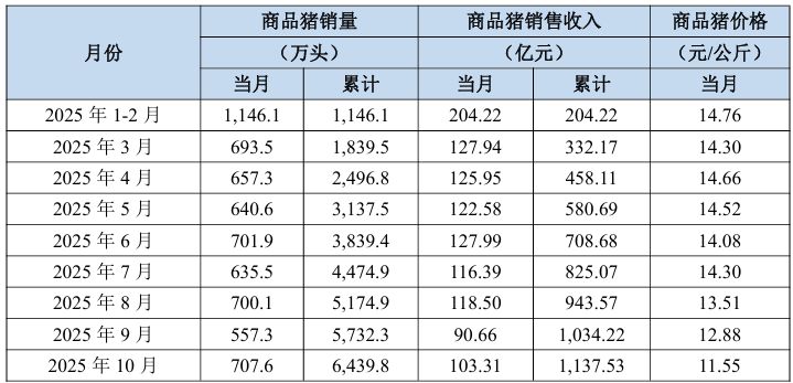 牧原股份、温氏股份等头部猪企10月出栏量大增 销售均价创年内新低
