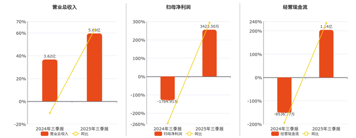公司营业总收入为5.88亿元。归母净利润为3423.50万元。经营活动现金净流入为1.14亿元。